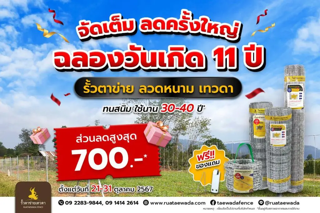 ฉลอง 11 ปี จัดเต็ม ลดใหญ่ รั้วตาข่าย ลวดหนาม เทวดา ส่วนลดสูง 700 บาท