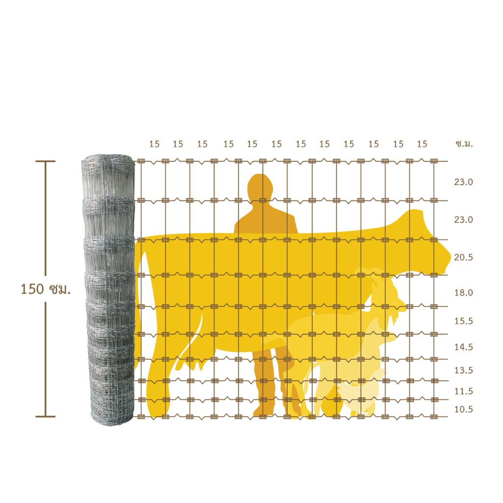รุ่งสูงพอดี รั้วรุ่นนี้ตอบโจทย์การใช้งาน รั้วสูง 150 ซม. มีช่องแนวตั้งห่าง 15 ซม. ช่องแนวนอนตาข่ายถี่ด้านล่าง ห่างด้านบน รั้วรุ่นนี้ตอบโจทย์การใช้งานได้หลากหลาย โดยเฉพาะความสูงที่พอดี ไม่ต่ำและไม่สูงจนเกินไป ความสูงยอดนิยม สามารถตอบโจทย์การใช้งานได้ดี ไม่ว่าจะล้อมบ้าน ล้อมสวน ล้อมฟาร์ม ฟาร์ม์ รั้วปศุสัตว์ หรือ ล้อมแพะ ล้อมแพะ ตอบโจทย์การใช้งานได้ทั้งหมด